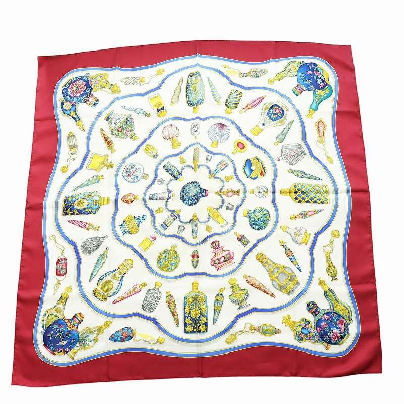 - レディース > 小物 > 【美品】HERMES エルメス カレ90 香水瓶柄 大判 アイボリー シルク HERMES(エルメス) カレ90 大判スカーフ ストール 総柄 香水の瓶 ロゴ