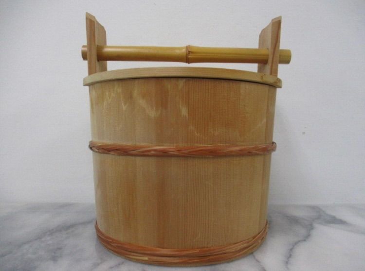 | メーカー | 茶道具】水張桶 円二造 竹手付 通桶 水屋道具 露地道具 手桶 木製水指 割蓋 |