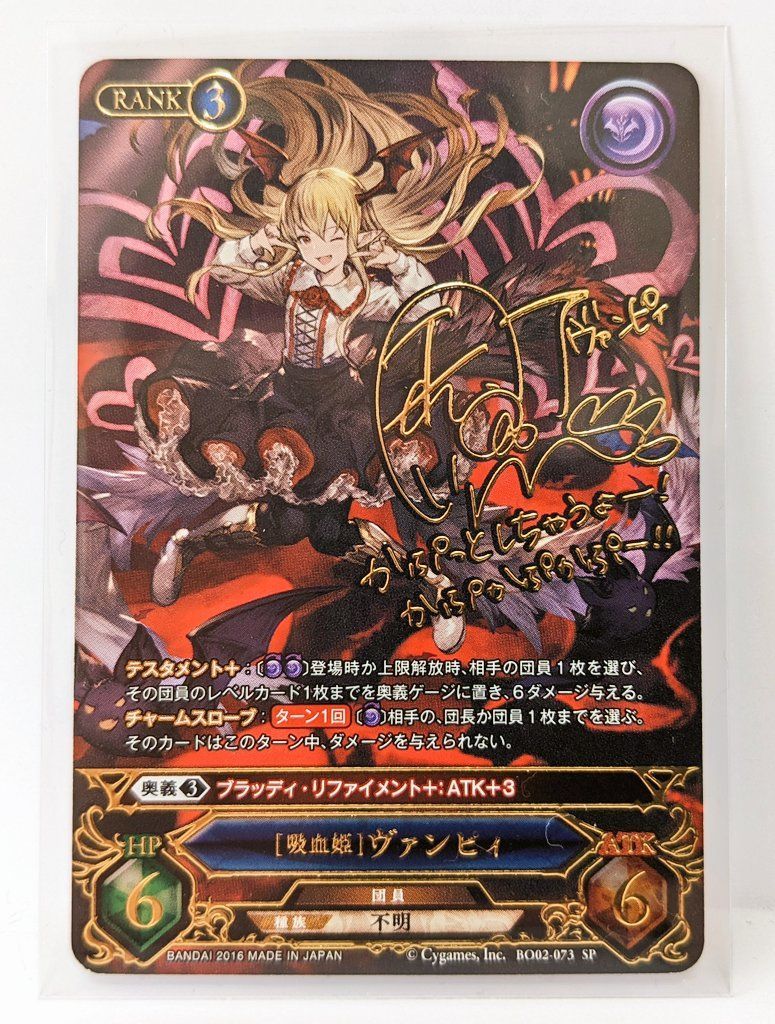 | 商品の特徴 | グラブル TCG [吸血姫] ヴァンピィ SP 声優サイン入り 2025年最新。グラブル TCG [吸血姫] ヴァンピィ SP 声優サイン入り グラブルTCG。オンライン セールゲーム・おもちゃ・グッズ - グラブル TCG [吸血姫。グランブルーファンタジーTCG 第2弾「闇との邂逅」(2016年)に封入、ヴァンピィの声優金箔押しサイン入りカード1枚です。2025年最新】グラブルtcg サインの人気アイテム - メルカリ。透明スリーブとプロテクトスリーブで二重に保管していたので、目立つ傷汚れ折れは見受けられません。。角とふちに白かけダメージもありません。2021 JLPGA トレーディングカード 畑岡奈紗 直筆サインカード。写真17の状態を折れ対策した包装で発送します。PSA10 ロルカナ ミッキーマウス きまぐれな魔法使い。※プロテクトスリーブには目立つスレ傷等あります。Ace 2005 杉山愛 テニス 直筆サインカード 100枚限定。(写真16参照)※家の電気照明での撮影の為、色のイメージは実物と異なるかもしれません。馬手箱 当選品 ディープインパクトファイルブック。気になる点がありましたらコメントをお願いします。第五人格 バレンタイン。 | ||