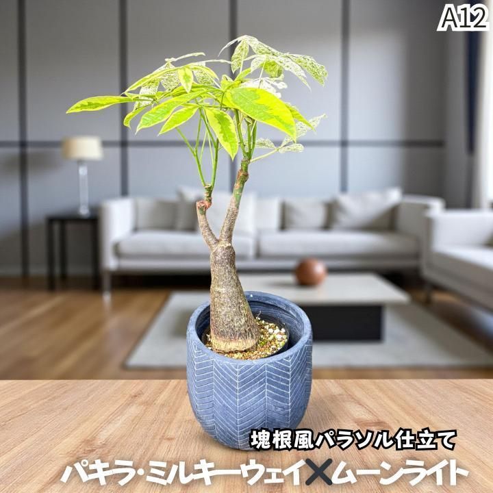 | 商品の特徴 | パキラ ミルキーウェイ × ムーンライト|塊根風パラソル樹形A12。パキラ ミルキーウェイ × ムーンライト|塊根風パラソル樹形A10。パキラ ミルキーウェイ × ムーンライト|塊根風パラソル樹形A12。✨世界にひとつだけの “特別なパキラ”ミルキーウェイとムーンライト、二つの希少な斑入り品種を贅沢に接木した、唯一無二のパラソル仕立てパキラです。パキラ ミルキーウェイ × ムーンライト|塊根風パラソル樹形A12。幹は地植えでじっくり育てた実生株を使用。。がっしりとした幹と、広がる斑入り葉が織りなすパラソルのような美しいシルエットは、お部屋に“本物の存在感”をもたらします。斑入りパキラ ムーンライト 希少 実生。✨立体感と迫力あふれる接木技術✨インテリア性抜群の広がる葉姿✨無機質用土で虫・カビがつきにくく、清潔&管理も簡単!リビングや玄関はもちろん、店舗ディスプレイにも最適。超絶希少❗️完全実生❗️パキラ ムーンライト 実生✨。しっかりした株なので初心者の方にも安心しておすすめできます。超絶希少❗️完全実生❗️フルムーン❗️パキラ ムーンライト 実生✨。⭕ 商品情報✅ 品種名:パキラ・ミルキーウェイ × ムーンライト接木パラソル仕立て✅ サイズ:鉢底から約 65cm✅ 鉢:プラ鉢6寸(※飾り鉢は撮影用のため付属しません)✅ 用土:無機質用土(コバエ・カビの発生を抑制)✅ 撮影日:9月1日✅ 送料:料金込み(匿名配送)⭕️ 下記のハッシュタグもぜひチェックしてみてください♪#パキラミルキーウェイ・・#パキラムーンライト・・#パキラミックス・・#ストーンフィールドお手入れガイド】⭐️水やり【頻度の目安】⭐️⭐️(少なめ)・土がしっかり乾いてから、鉢底から流れ出るまでたっぷり水やり・水の与えすぎは根腐れの原因になるので注意しましょう⭐️日当たり【光の必要度】⭐️⭐️⭐️(中程度)・レースカーテン越しの明るい室内が理想・直射日光は避けてください(葉焼け防止)⭐️育てやすさ【育てやすさ】⭐️⭐️⭐️⭐️(やさしい)・基本のお世話さえ守れば、初心者の方でも安心して育てられます・丈夫で長く楽しめるのも魅力⭐️ 温度管理【耐寒性】⭐️⭐️(注意)・冬は10℃以下にならないように管理しましょう・エアコンの風が直接当たる場所は避けてください⭐️ 清潔さ・虫の出にくさ【清潔さ】⭐️⭐️⭐️⭐️⭐️(非常に高い)・無機質用土だからコバエやカビが発生しにくく、清潔な環境で育てられます・室内管理にもぴったり#パキラミルキーウェイ #ムーンライト #パキラパラソル仕立て #接木パキラ #ストーンフィールド #観葉植物 #希少植物 #インテリアグリーン品種名...パキラ | ||