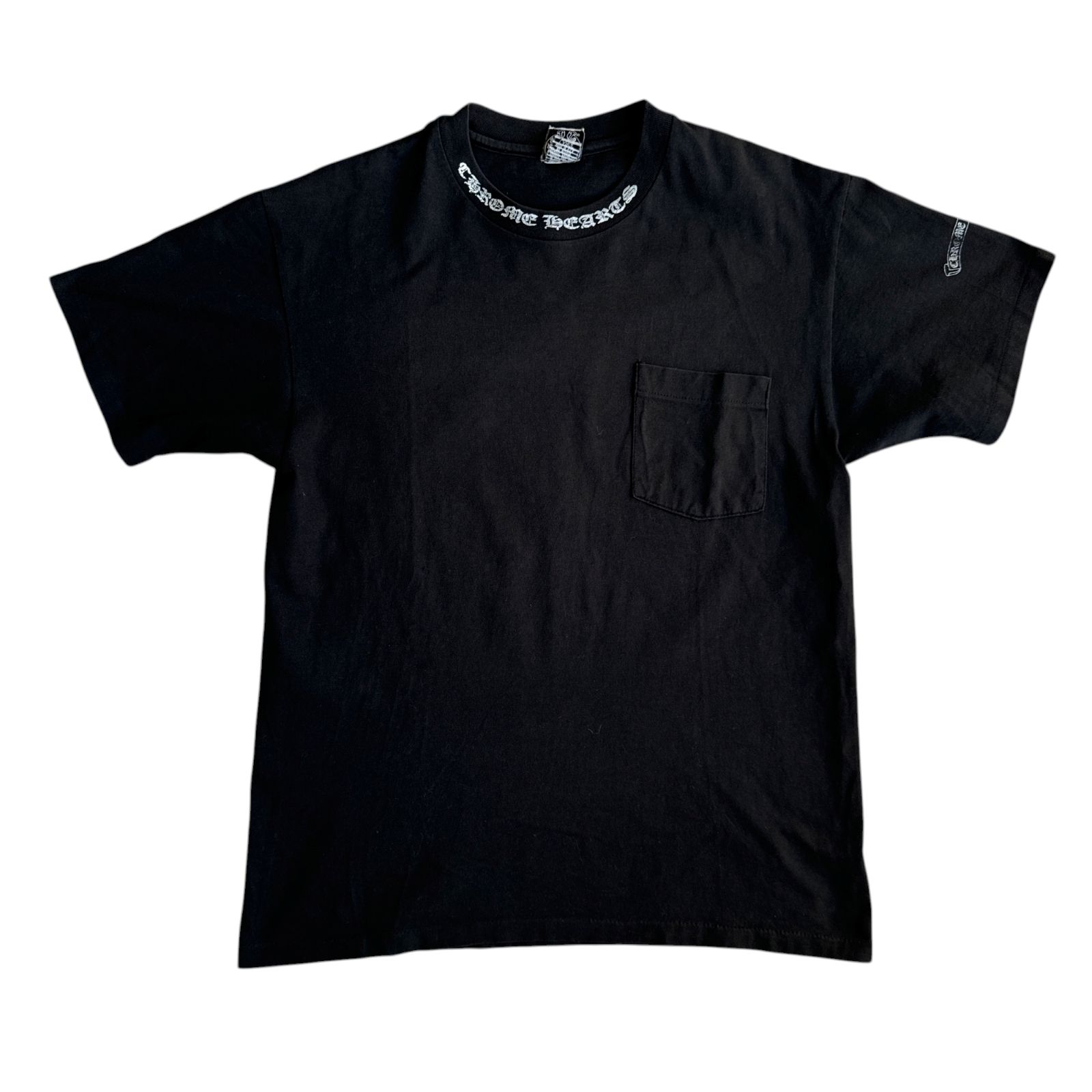 【90S】Chrome Hearts スクロールロゴ刺繍【Vintage】黒/黒 90s OLD CHROME HEARTS ネックロゴ Scroll Label シングルステッチ