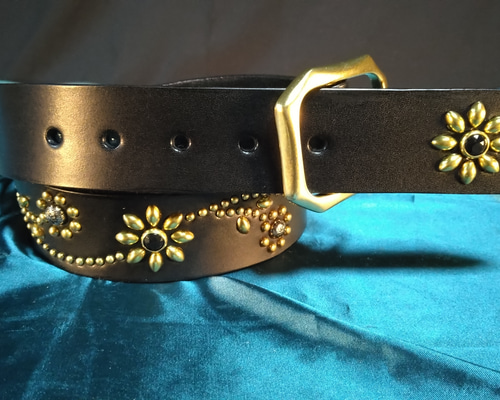 | メーカー | まるち栃木レザーツタ&フラワースタッズブラックレザーベルト 栃木レザー |