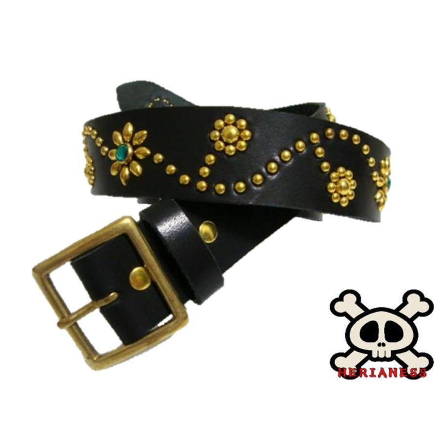 | メーカー | 栃木レザーフラワー型スタッズベルト 黒(グリーンスポッツ)ヴィンテージタイプ 真鍮製バックル |