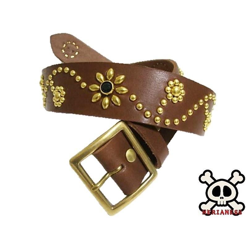 | メーカー名 | 9ee45 | ブランド名 | 真鍮製バックル 栃木レザー フラワー型スタッズベルト チョコ(ブラックスポッツ) 真鍮製バックル |