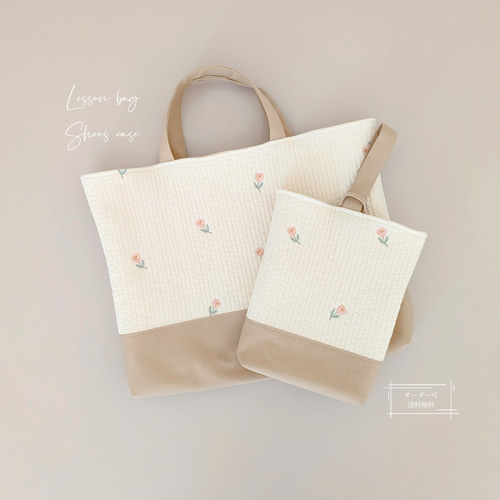 | 商品の特徴 | 送料無料】チューリップ刺繍のヌビバッグ レッスンバッグと上靴入れ。送料無料】チューリップ刺繍のヌビバッグ レッスンバッグと上靴入れ。送料無料】チューリップ刺繍のヌビバッグ レッスンバッグと上靴入れ。ご覧いただきありがとうございます♡ヌビ チューリップ刺繍柄 レッスンバッグ ・上履き入れの2点setです♪*レッスンバッグ * 片面フリル付きsize(持ち手含まず)縦 30㎝横 40㎝マチ 5㎝*上履き入れ* 片面フリル付きsize(持ち手含まず)縦 27cm横 20cmマチ 4cm↓オーダー商品↓オーダー費用代、商品につき+¥200頂戴しております。*レッスンバッグ *チューリップ刺繍×くすみピンク(片面フリル)裏地 ピンクチェック持ち手 くすみピンクsize(持ち手含まず)縦 30㎝横 40㎝マチ 5cm*レッスンバッグ *チューリップ刺繍×くすみピンク(片面フリル)裏地 ピンクチェック持ち手 くすみピンクsize(持ち手含まず)縦 35㎝横 45㎝マチ 7cm4点おまとめ割-¥150 ハンドメイドのため、+-1cm程度誤差が ある場合があります。〔お手入れ方法〕・洗濯ネットを使用してください(洗濯機OK)・塩素系漂白剤、蛍光増白剤を使用しないでください⚠︎ハンドメイドのため、寸法には若干の個体差があります。またプリント柄の出方が異なる場合があります。⚠︎丁寧に作っていますが、多少のゆがみやズレなどございます。⚠︎配送の際のたたみじわはご了承ください。#通園バッグ#レッスンバッグ#上履き入れ#絵本バッグ#手提げ#女の子#ハンドメイド#イブル#入園入学準備#ヌビバッグ。bbde5b68c9eba9df512985c5644884。。こん オーダー 手刺繍 濃紺 レッスンバッグ 上履き入れ ティッシュケース。パセリの妻様確認用★リバティフリルのレッスンバックセット アンティークローズ。cheri✳︎ ヌビ さくらんぼ レッスンバッグ 上履き袋 体操着袋。nana♡ レッスンバッグ 上履き袋 お弁当袋 お着替え袋 コップ袋 | ||