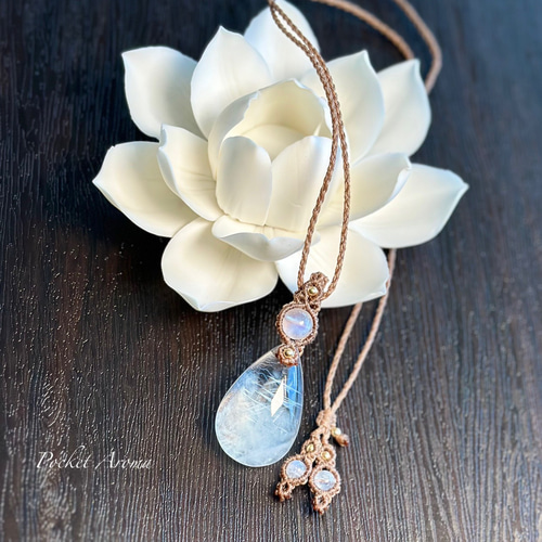 - アクセサリー > ネックレス・ペンダント > 『天玲』ブルーエンジェルラダークォーツとブルームーンストーンのマクラメネックレス 天玲』ブルーエンジェルラダークォーツとブルームーンストーンの