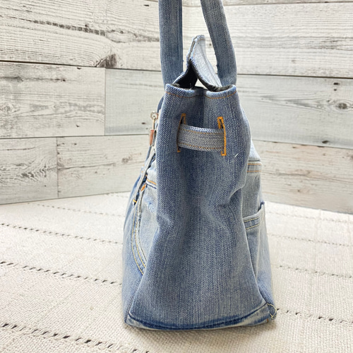 | メーカー | デニムリメイク フラップ付きトートバッグ Sサイズ 底板&錠付き 持ち手少し短め |