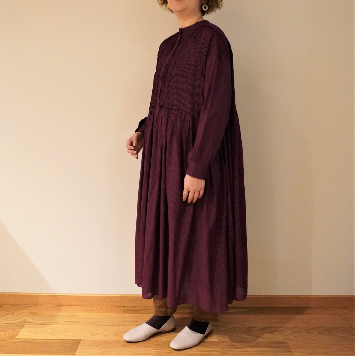 | メーカー | メゾンドソイル シャツワンピース ピンタック ブラウン コットンボイル maison |