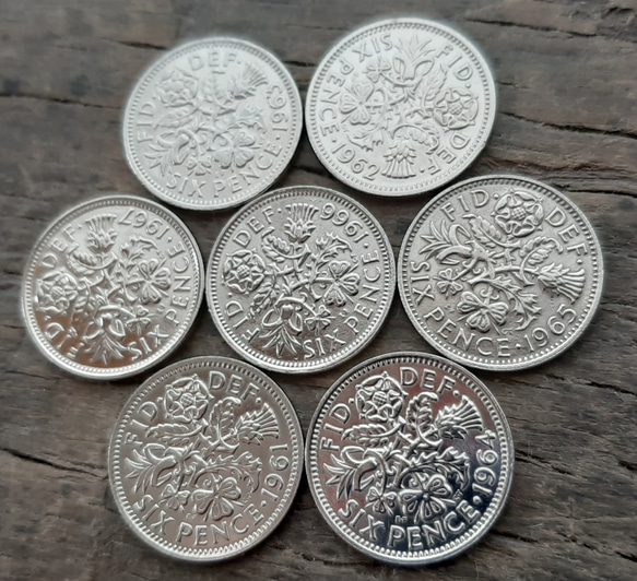 - 美術品・アンティーク・コレクション > コレクション > 100セット シックスペンス イギリス ラッキー6ペンス 英国本物 英国幸せのシックスペンス イギリス 7枚セットラッキー6ペンス コイン