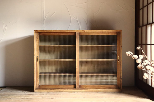 - リビング収納 > ガラスケース・ディスプレイケース > アンティーク ガラス キャビネット 食器棚 戸棚 水屋箪笥 無垢材 無塗装 アンティーク ガラス キャビネット 食器棚 戸棚 水屋箪笥 無垢材 無