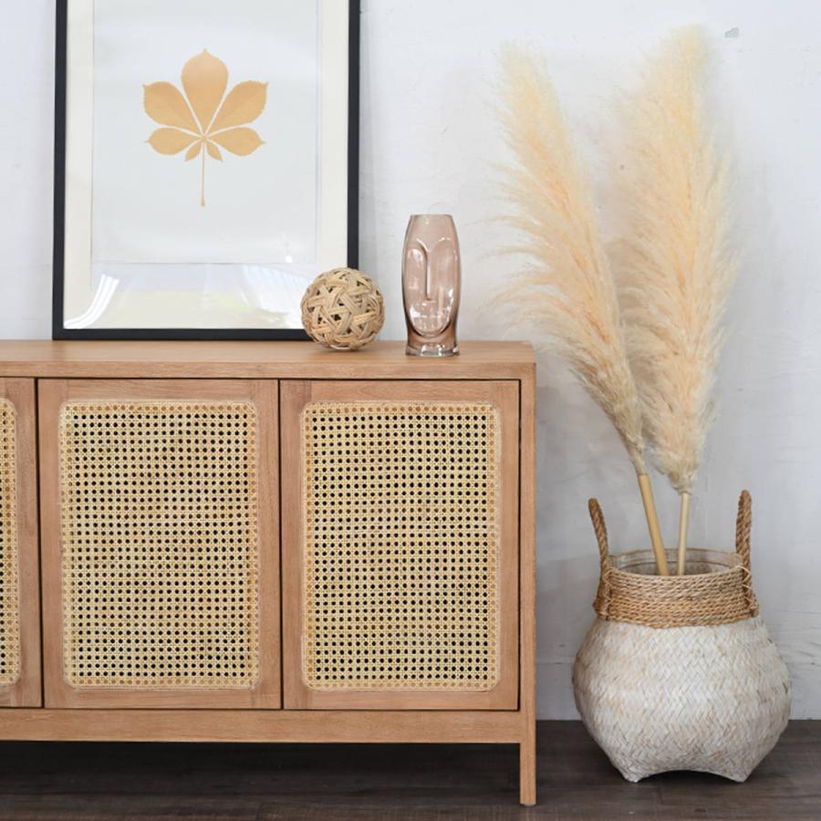 - リビング収納 > キャビネット・サイドボード > ラタン 籐家具 サイドボードチェスト 4段 ヴィンテージ ガラス扉 キャビネット ラタン チーク無垢材 KAGOME 120cm幅 開梱設置 ( 収納