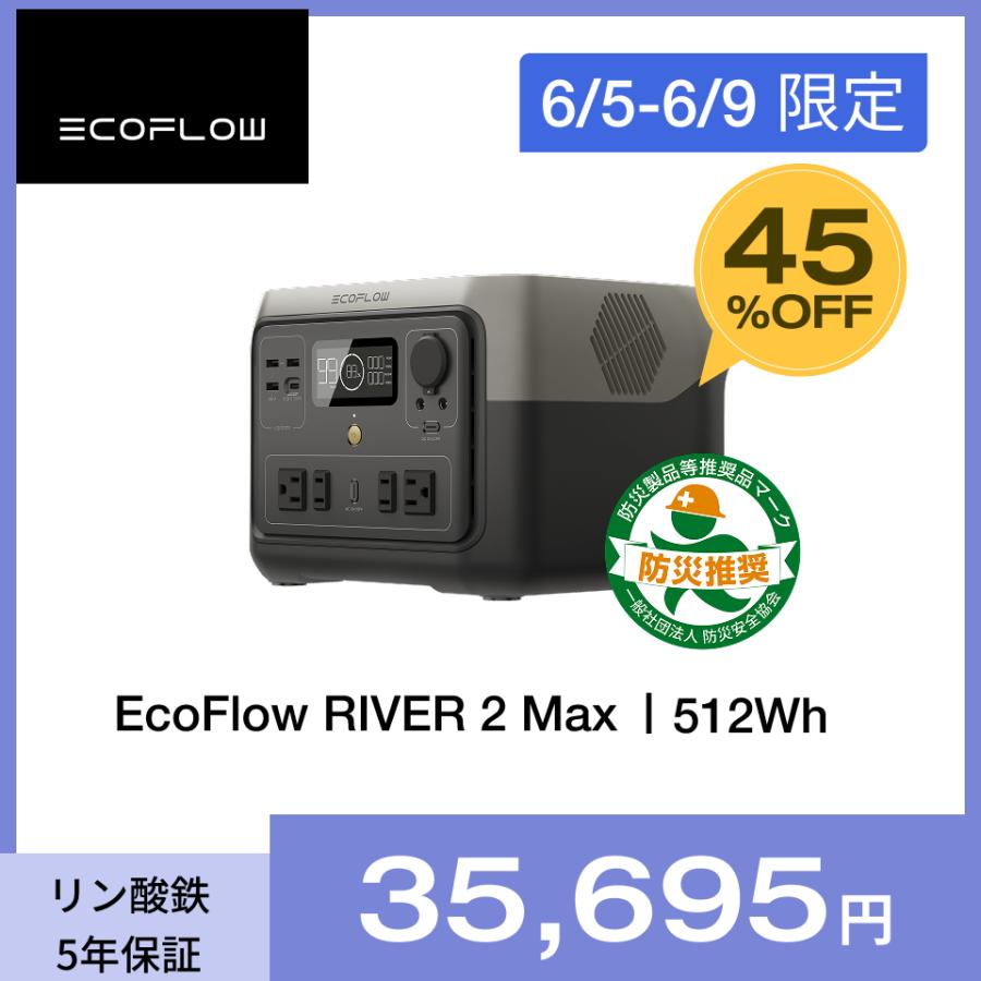 - 防災関連グッズ > 発電機・ポータブル電源 > EcoFlow 2 Max ポータブル電源 512wh ECOFLOW ポータブル電源 リン酸鉄 EcoFlow RIVER 2 Max 大容量 512Wh