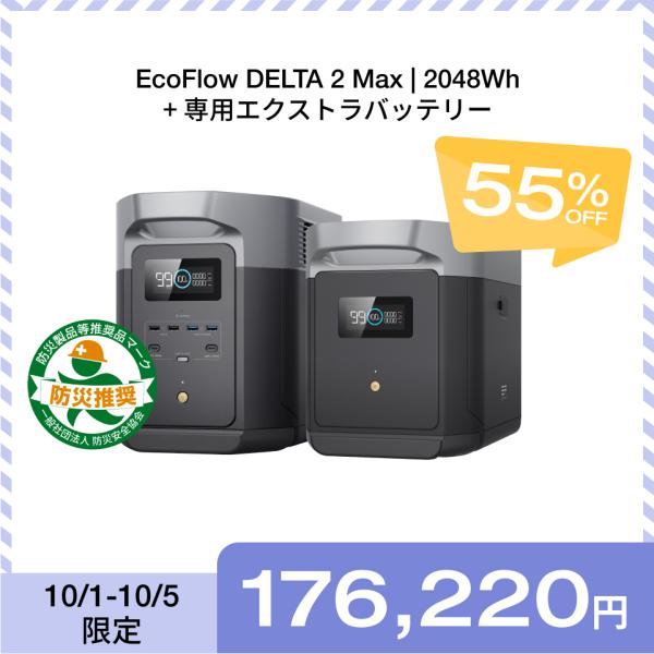 - 防災関連グッズ > 発電機・ポータブル電源 > 発電機・ポータブル電源 EcoFlow 2 Max ECOFLOW ポータブル電源 大容量 セット DELTA 2 Max 2048Wh + 専用