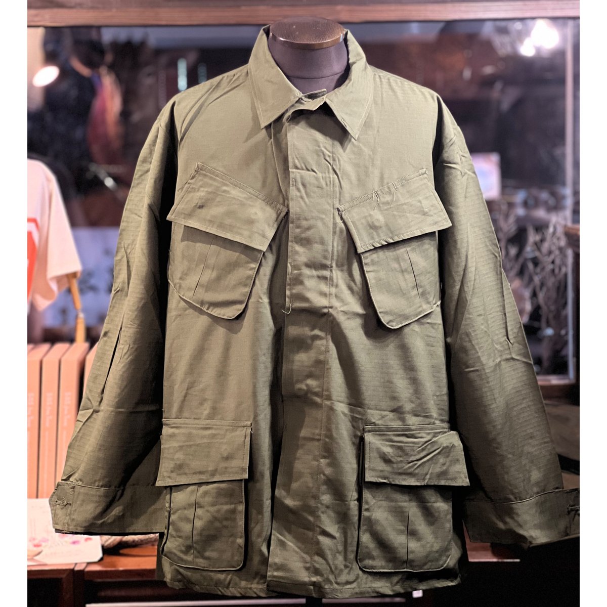| 商品の特徴 | fit=scale-down,w=1200。ジャングルファティーグタイプ ジャケット ベトナムジャケット 4th。ジャングルファティーグタイプ ジャケット ベトナムジャケット 4th。【商品名】ジャングルファティーグジャケット【商品説明】アメリカ軍がベトナム戦争期に採用していた「ジャングルファティーグジャケット」です。。大きめのフラップポケットが4つ配置され、機能性と収納力も兼ね備えています。人気ユーロヴィンテージ、フレンチブラックモールスキンジャケット。【状態】ヴィンテージ品のため、多少の使用感や色褪せがありますが、着用に支障はありません。ジャケット・アウター Parismatch。。11089b.jpg。熱帯地域での使用を目的に作られており、軽量なリップストップコットン素材とゆとりのあるシルエットが特徴です。通気性が良く、普段使いのアウターとしても人気の高いアイテムです。ナイジェルケーボン ガンナージャケット ピグメント 50。か*つ様 スペシャル 50s 60s スプリンター カモ ドイツ軍 ミリタリー。ミリタリーファッションの定番としてはもちろん、古着コーデやアウトドアシーンにも活躍します。サイズは実寸を参考にしてください。1968年 US ARMY ジャングルファスティーグジャケット リップストック。【超激レア】 50年代モデル スーベニアジャケット ヴィンテージ 空軍 XL。古着の風合いを楽しんでいただける一着です。【注意事項】古着にご理解のある方のみご購入をお願いいたします。【極上品質】40s Allリネン M35 モーターサイクルコート フレンチアーミ | ||
