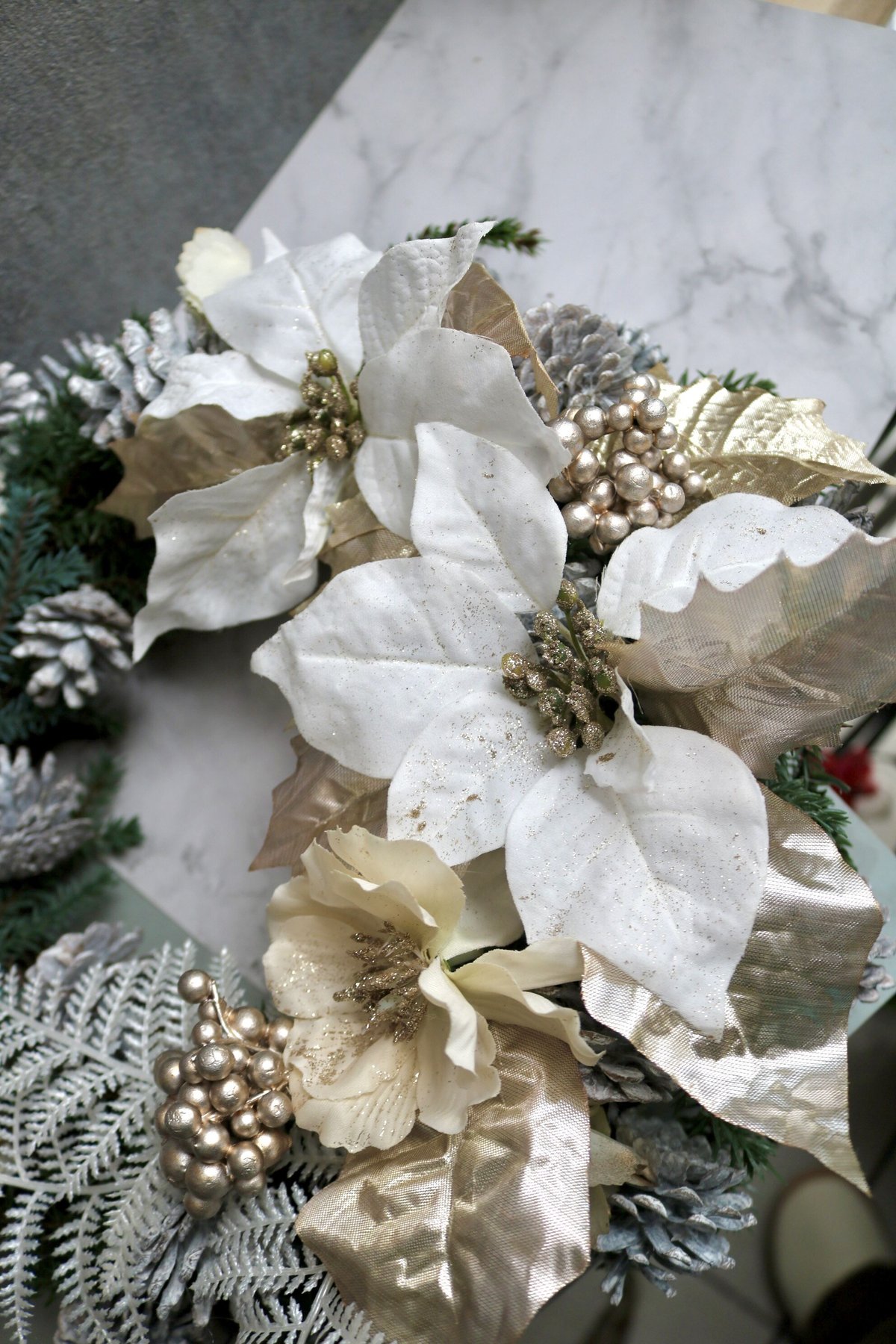 - インテリア・生活道具 > フラワー・リース > 商品名【美鐘】ゆみい♥ポインセチアとローズの花束風クリスマススワッグリース 商品名【美鐘】ゆみい♥ポインセチアとローズの花束風クリスマス
