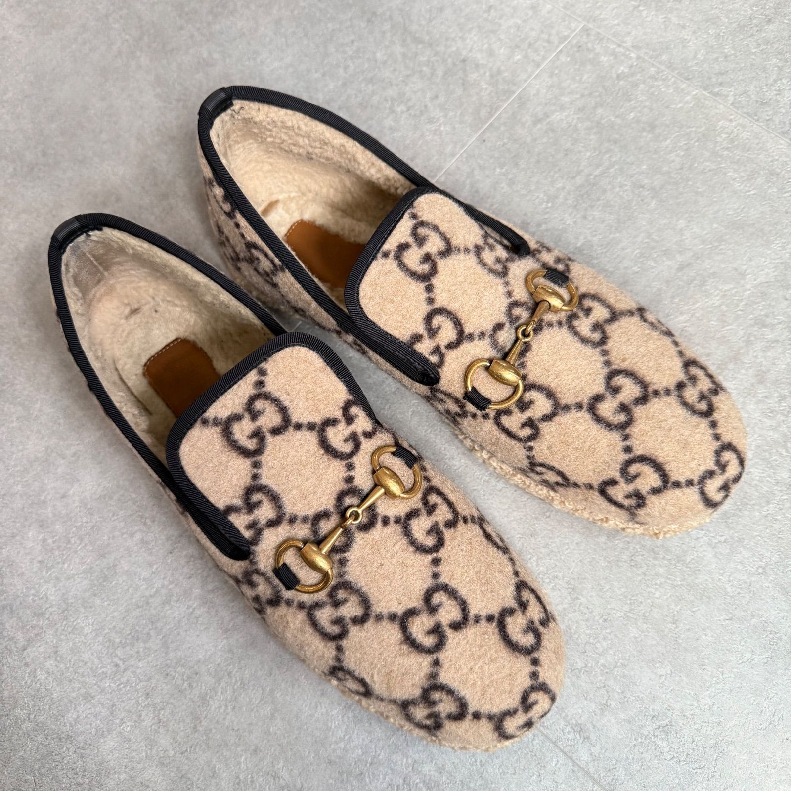 | 商品の特徴 | GUCCI グッチ スリッポン ローファー ホースビット モカシン ウール。GUCCI(グッチ) ホースビット レザー スリッパ イニシャル入り。楽天市場】新品未使用 GUCCI グッチ ホースビット ムートン サイズ8。グッチのムートンスリッポンです。リユース品をお譲り頂きましたが、使用機会が無さそうなのでお譲り致します。表面に毛羽立ちありミッドソールに毛羽立ち、若干の汚れありアウトソールに汚れ、若干のすり減りありインソール、履き口に毛羽立ちあり金具部分にスレあり付属品なし大きなダメージはありませんので問題なく使用して頂けると思いますが、中古品にご理解の上ご購入下さい。。GUCCI グッチ スリッポン ローファー ホースビット モカシン ウール。。yuki 36ブラック | ||
