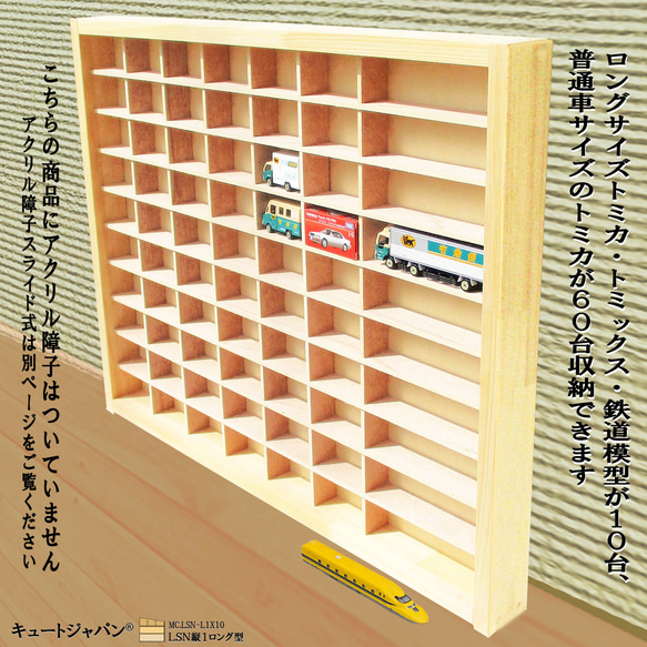 | 商品の特徴 | トミカ収納ケース トミカ60台・ロングトミカ10台 アクリル障子なし。ミニカー収納ケース アクリル障子付 60台・ロングトミカ10台 日本。Amazon.co.jp: キュートジャパン アクリルスライド障子 トミカケース。【本体サイズ】 巾734ミリ 高さ594ミリ 奥行73ミリ。【ロングサイズマス目寸法】 巾169ミリ 高さ50ミリ 奥行40ミリ。外枠にメルクシパイン集成材・中桟にたわみの無い5.5ミリ厚のラワンベニヤを使用しています。トミカ(箱入り)が60台収納、ロングトミカが10台収納可、コレクションを惹きたてるディスプレイケースです。プレゼントにもおすすめです。大事に保管したいコレクター様にご満足いただける一品と自負しております。アクリル障子付ケースは3割を超える方がリピート(感謝!)されています。ミニカーは付属していません、ケース本体のみの販売です。天然単板独特の節目・木目の濃淡・接ぎ目が目立つ場合がありますが、構造上問題はありません。ご了承ください。引手加工をほどこしていますので開け閉め楽々です。長年お使いいただけるよう頑丈な造りとなっています。サイズをご確認のうえご購入ください。ご購入された方の『コレ、また欲しい!』の嬉しいご感想を励み(ビタミン剤です!)にして、日々製作を行っております。トミカケース60台・ロングトミカ10台収納 コレクション アクリル。【ミニカーマス目寸法】 巾82ミリ 高さ50ミリ 奥行40ミリ。。No551 ミニカー1/18箱無し AUTO art Aston Martin。アクリル障子付の収納ケース 未使用製作品 LS縦1ロング型です。カーズ•トミカ チームマックィーン ピットクルーセット。ホットウィール COLLECTORS CLUB Purple Passion。天然素材の木の香り、ぬくもりを感じられます。ホットウィール MUSTANG COBRA。LB★WORKS Nissan GT-R マットグレー MINI GT。お片付けが苦手なお子様にも楽しみながら整理上手に・・。Kässbohrer Setra S6 ミニカー Schuco製 赤と白。ミニカー MINI GT Lamborghini Aventador GT EVO 494。アクリル障子は透明度が高く、大切なコレクションをホコリや傷から守ります。ランボルギーニ カウンタック LP5000S 1/24スケール ブラック。ホットウィール Classic Cobra。『こんなの欲しかった!』 そう言わせたい一心で製作しました。【A0279-08】ナスカーWINNERS CIRCLE/レーシングカー/計5台。ホットウィール ‘70 Plymouth Roadrunner。ありがとうございます。BMW Z3 Series ミニカー。Fantail様 リクエスト 6点 まとめ商品。購入時の注意点:材料は建材を使用していますが、表面は天然木のため色目・木目・節の具合がその都度変わります。ミニカー EBBRO NISSAN GT-R N Attack Package 1/43。TOYOTA CELICA XX 2000 GT-TWINCAM 24 ミニカー。製作では裏面の意匠は視覚的に重要視していません。【翔平】1/64 GCD三菱 ふそう 搭載型トラッククレーン 赤。トミカ トイズドリームプロジェクト 全6種セット。●スライド式障子は光線透過率93%の高品質アクリル板3ミリ厚を使用しています。LS460 メルセデスベンツ Sクラス 1/18。ミニチャンプス1/43 ウィリアムズ4台セット。●外枠に木目を活かしたパイン集成材を使用しています。【非売品】★ TOYOTA ランクル プルバックカー ブラック ホワイト。ディズニー ビークル コレクション トミカ 3点セット。※中桟は固定式で可動はしません。レッドブルホンダF1 RB18 2022 M.フェルスタッペン現地入手品 限定。35▢HOT WHeeLS フェラーリF2004 1/18 IY0702-3。●本商品は、(株)キュートジャパンにより日本国内で製作・販売を一貫して行っています。トミカ ダンディ DANDY 026。最終値引き☆ サークルKサンクス 京商 1/64 フェラーリ F1コレクション。製作・販売元 株式会社キュートジャパン#トミカ#ホットウィール#京商#1/64#コレクション#トミカケース#ミニカーケース#トミカ収納#ミニカー収納#ロングトミカ#LS縦1ロング型#ショーケース#キュートジャパン#四毒抜き | ||