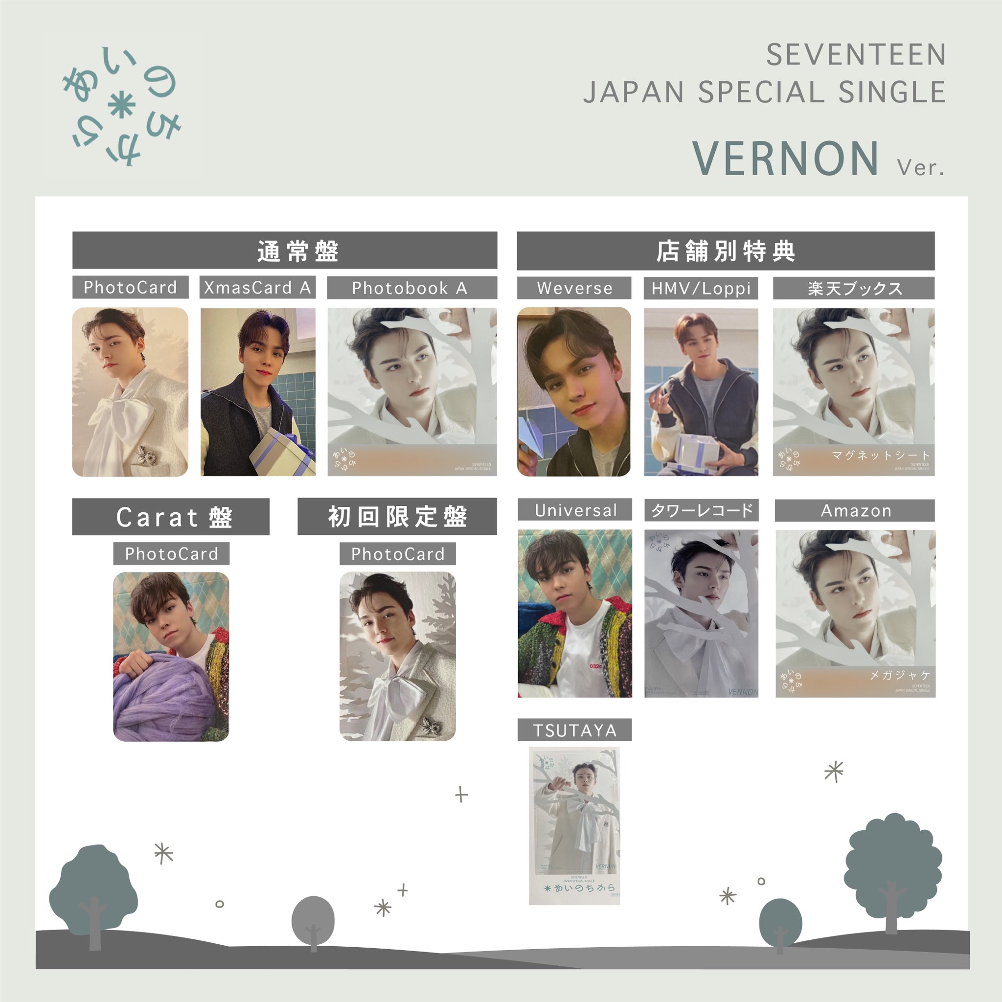 | 商品の特徴 | SEVENTEEN FC会員限定 投票企画 特典 MYBEST トレカ バーノン。SEVENTEEN FC会員限定 投票企画 特典 MYBEST トレカ バーノン。my best seventeen バーノン 2枚セット FC企画 当選トレカ - メルカリ。ご覧いただきありがとうございます☺︎SEVENTEEN Japan official fanclub \"CARAT\"会員限定 投票企画『MY BEST SEVENTEEN』2024年発行「CARAT MAGAZINE vol.13」の未公開写真を使用したフォトカードです。。その他ご質問ありましたらお申し付けください。SEVENTEEN FC更新特典 トレカ ピクチャーチケット バーノン - メルカリ。新品未使用品です。傷や汚れ等ございません。SEVENTEEN セブチ トレカ ジョンハン ハニ 2。岩本照 公式グッズリスト。グループ名···SEVENTEENメンバー名···バーノンペンライト カラット棒セブチ SEVENTEEN S.COUPS JEONGHAN JOSHUA JUN HOSHI WONWOO WIOZI THE8 MINGYU DK SEUNGKWAN VERNON DINO エスクプス スンチョル ジョンハン ジョシュア ジス ジュン ホシ スニョン ウォヌ ウジ ジフン ディエイト ミョンホ ハオ ミンギュ ドギョム ソクミン スングァン バーノン ハンソル ディノ チャン トレカ M2U サウンドウェーブ sound wave パワステ パワーステーション Power station アルバム CD フォトブック チェキ カード 4カット 4cut フォト carat carat盤 カラット盤 通常盤 初回A 初回B 初回C 初回D フラッシュプライス盤 タワレコ HMV ホログラムUniversal Music Store/weverse shop/be the sun japan/dream/neme 17/neme/hanabi/HEAVEN/museum/CARATLAND/CARAT LAND/ケレン/dicon 101/dicon/POWER OF LOVE/Attacca/SOCIAL CLUB CARAT/SOCIAL CLUB/GINGER/Your Choice/HARE/カフェ/インスタントフォト/アクリルスタンド/CARAT盤/ペンミ/ソウルコン/IDフォト/フォトブック/HMV/アルバム/特典/レンチキュラー/ポストカー/シリアル/Weverse/未開封 | ||